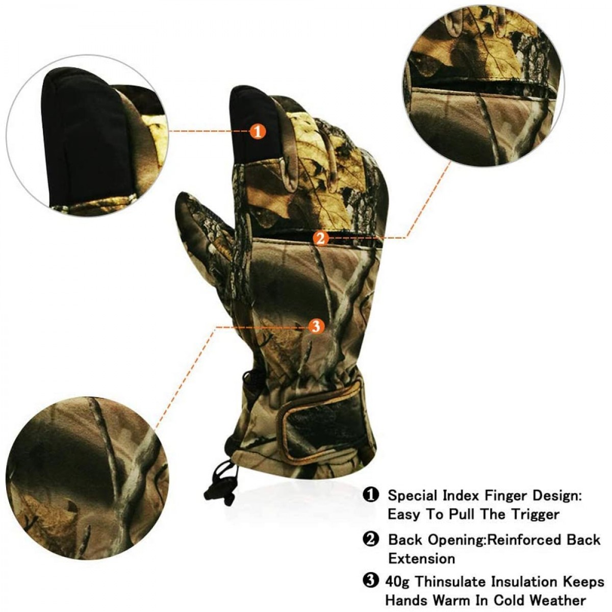 40gThinsulate insulation better protects hands from very cold condition; Breathable waterproof membrane to keep your hands dry from wet condition